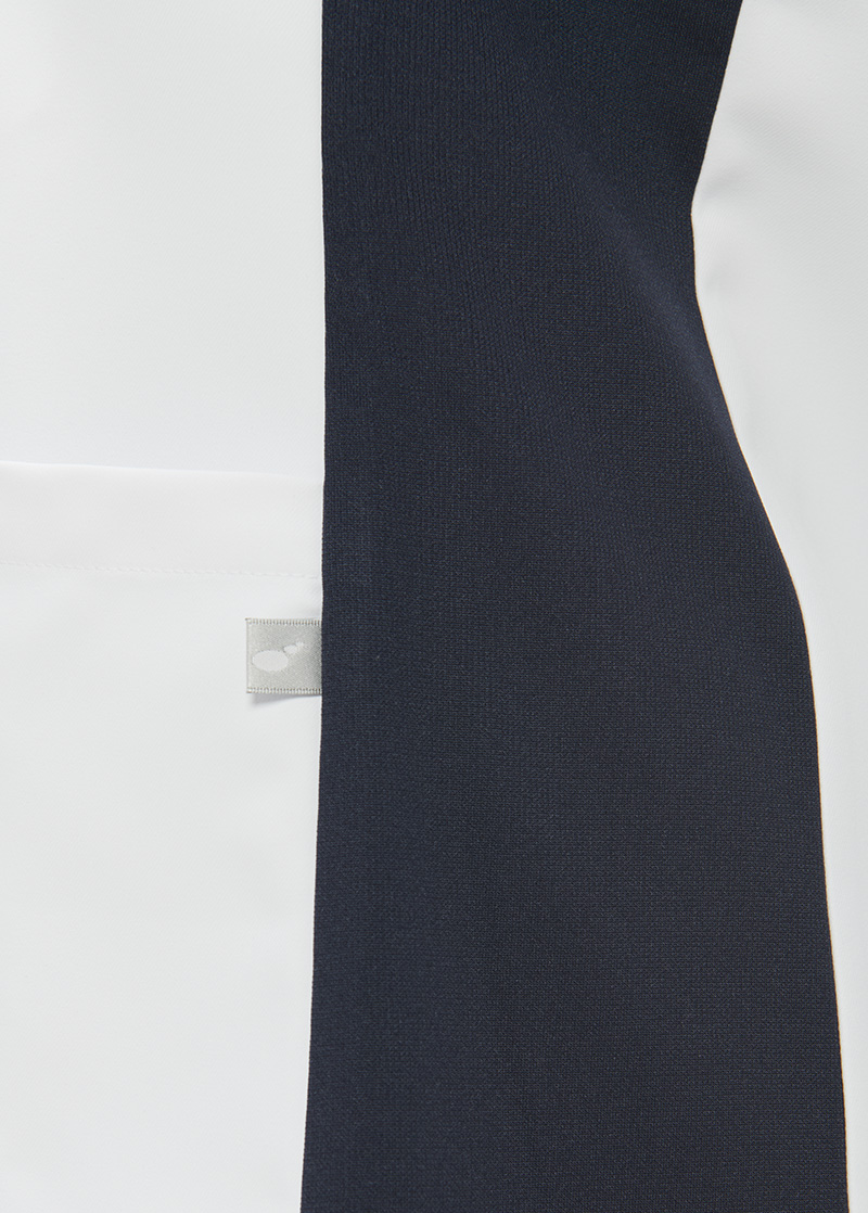 ●上品な風合いのほどよいストレッチ素材です。●フルダル糸使いのため防透性に優れています。●特殊仕上により吸水、防汚効果があります。●業務用洗濯にも耐えうる形態安定素材です。