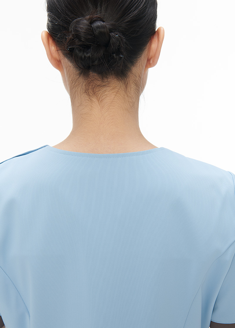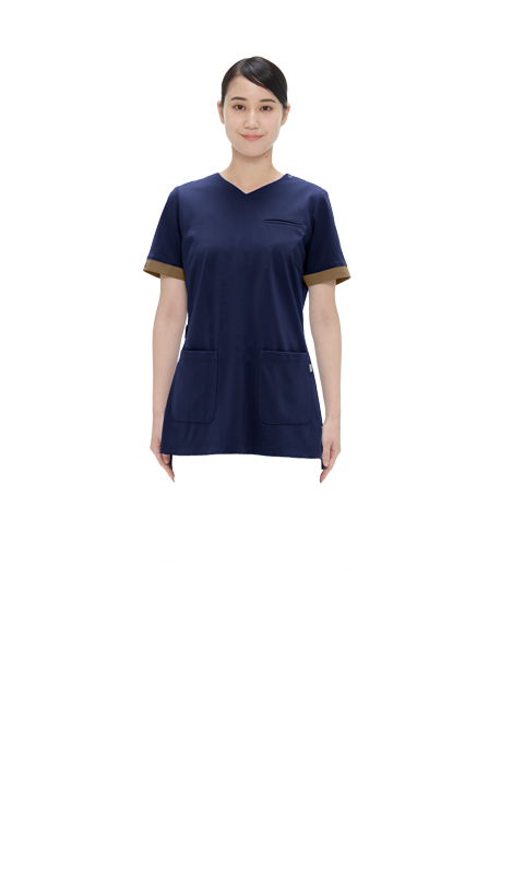 袖口の配色パーツがアイキャッチになるレディススクラブ。シンプルな中にポケットの形状や優しい雰囲気のネックラインなどこだわりが凝縮されています。高機能ニット素材を使用していますので着心地も快適です。●女性用●スマートフォン用ポケット右脇●右脇キーループ