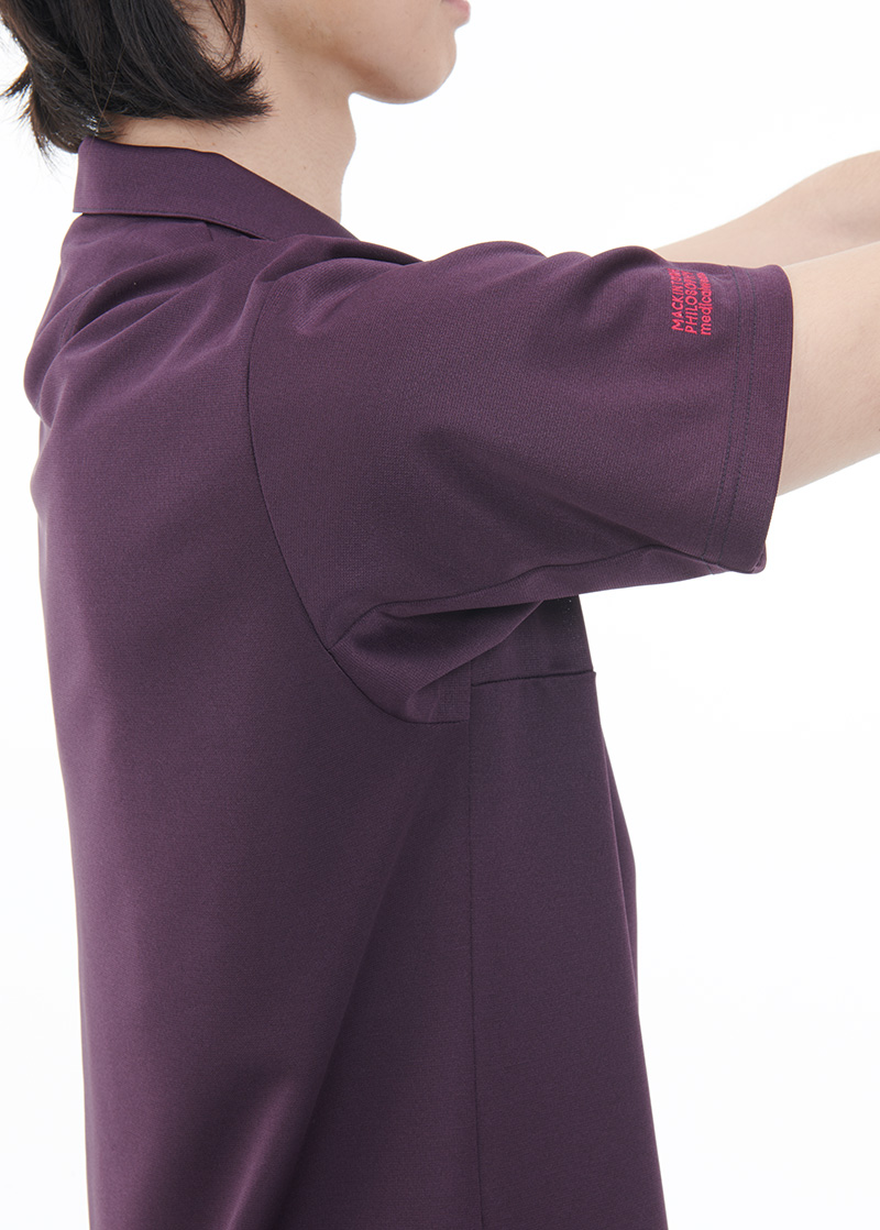 非常に高い通気性と伸縮性をもったニット素材を使用しています。動きやすいエアアームカット搭載、バックポケット付き。●衿付き